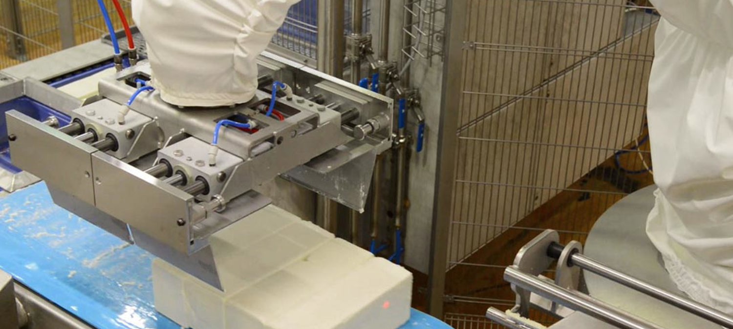 The mozzarella dairy wished to further automate its production line. The production line dealt with loading 2.3 kg mozzarella blocks, which involved a highly monotonous and repetitive process. Arla Rødkærsbro aimed to minimise heavy lifting for its employees.