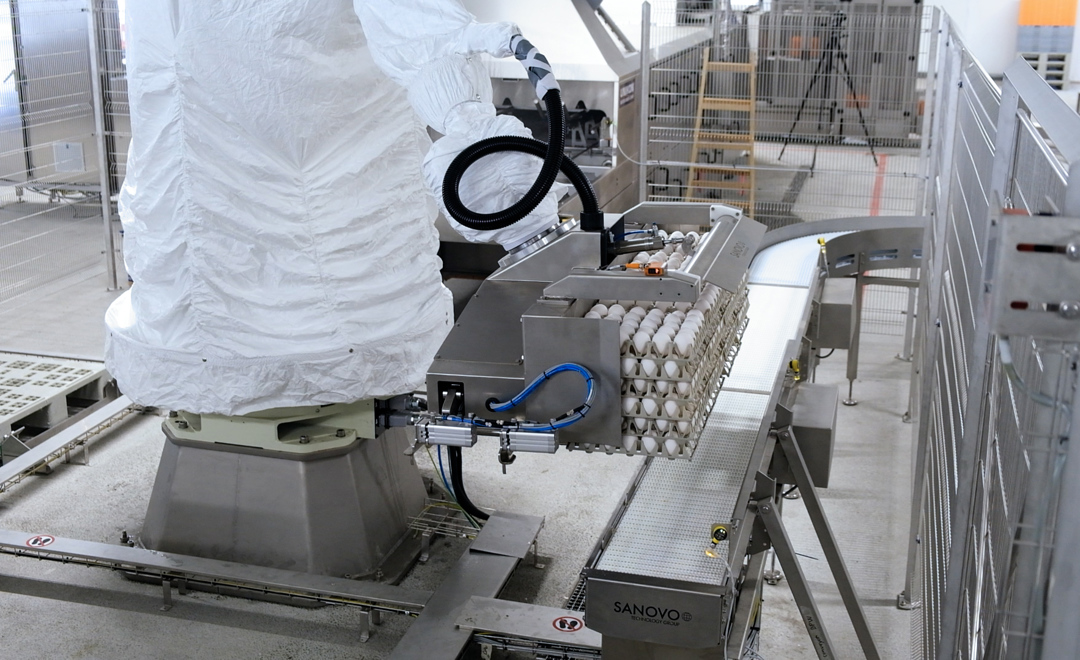 SANOVO TECHNOLOGY GROUP's robotic automation program offers several efficient and flexible solutions that are a vital part of any modern egg handling and processing factory. However, robotic automation is not only a question of reducing labour. It relates just as much to increasing biosecurity, product quality, and maximising the yield – and at the centre of their robotic automation solutions are robots from Kawasaki.