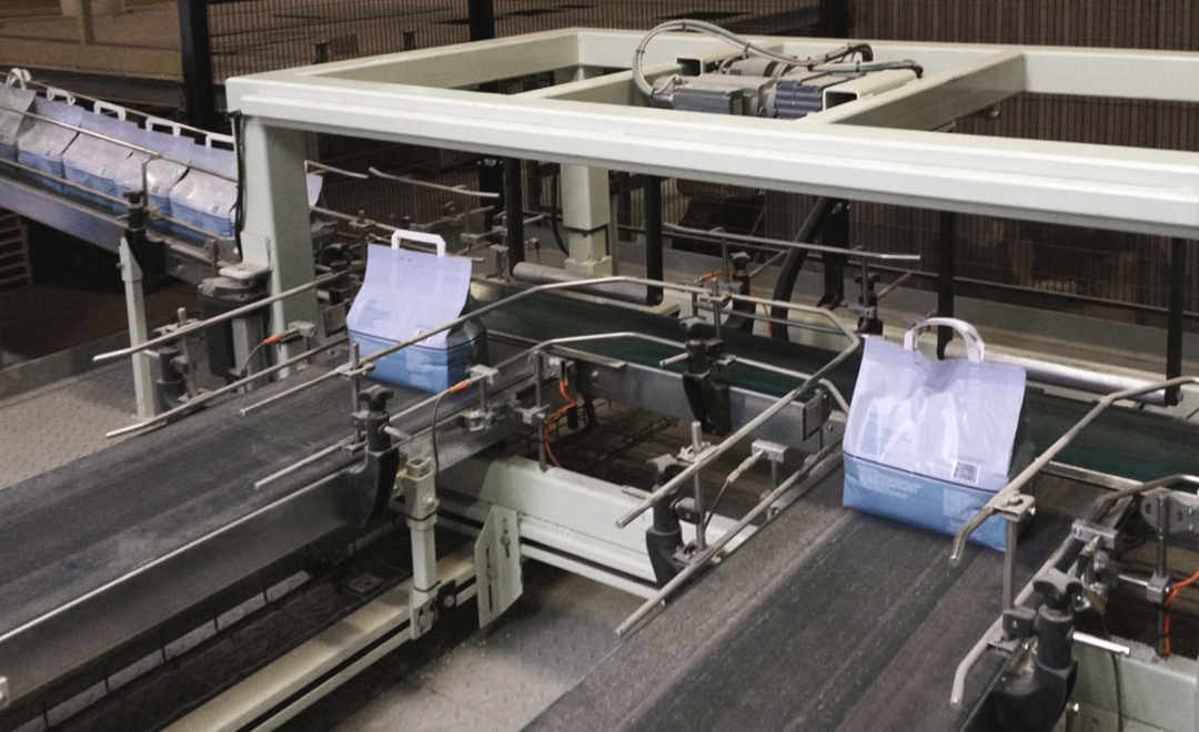 Since January 2015, two renovated 20 kg Kawasaki robots have been assisting the line at Imerys' factory in Mors. Here, the two robots run synchronously, performing the same task: receiving sacks from connected conveyor belts and sorting them into different lanes. This ensures they are placed in the correct packing pattern and ready to be palletised.