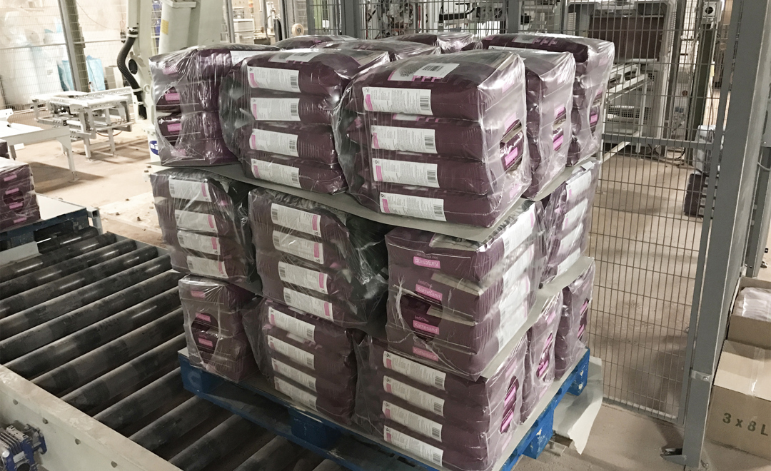 At Imery Absorbents, keeping up with demand has been a challenge. With an extensive range of product numbers and numerous small productions, palletizing the finished products has been a particular challenge.