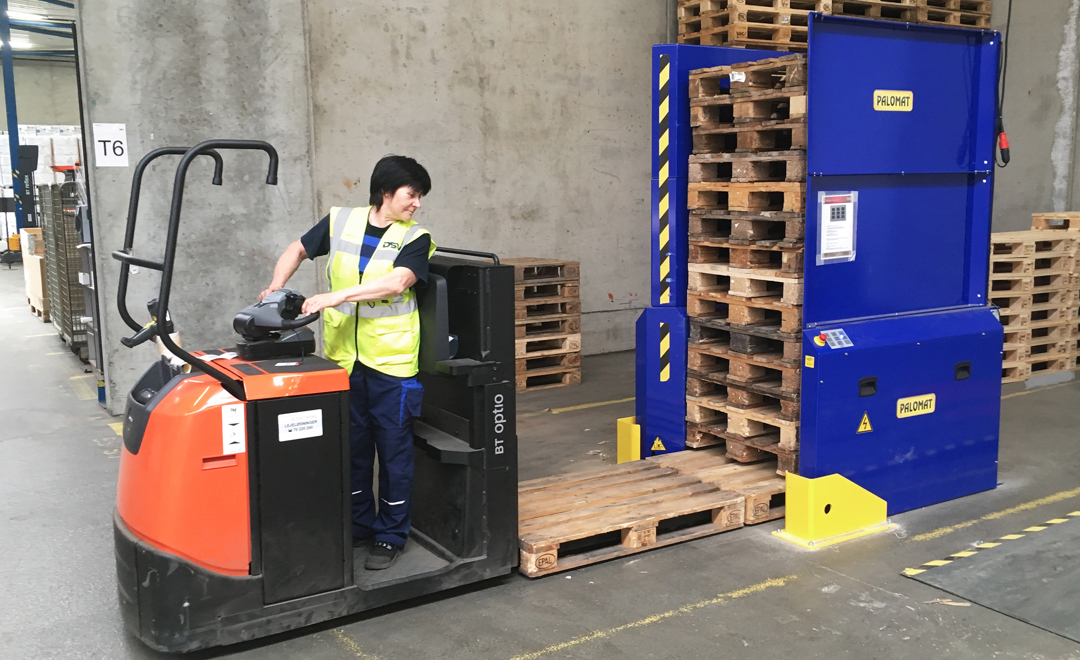 Protect your employees from heavy pallet lifting, improve the work environment, and boost efficiency with a pallet magazine from PALOMAT®.