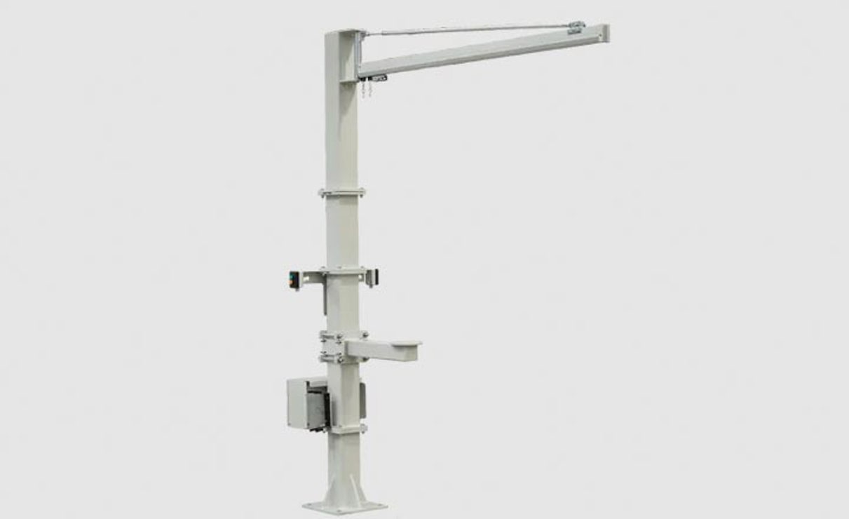 In most cases, there is no need for fencing for this collaborative solution, and the workforce can work side by side with the Cobot Lift. This solution comes with an arm for the UR10, to be mounted on a steel crane, and it can be configured for double palletizing.